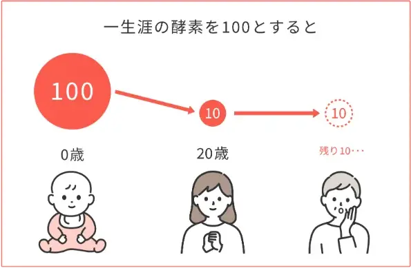 つまり、腸内環境の良し悪しが体内酵素を作る能力に大きく影響しているのです。