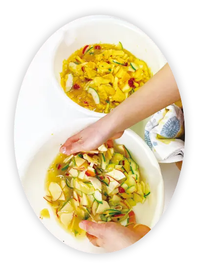 お待ちかねの酵素づくり、楽しい気持ちでつくることが美味しくてエネルギーが高い酵素を造る秘訣です。